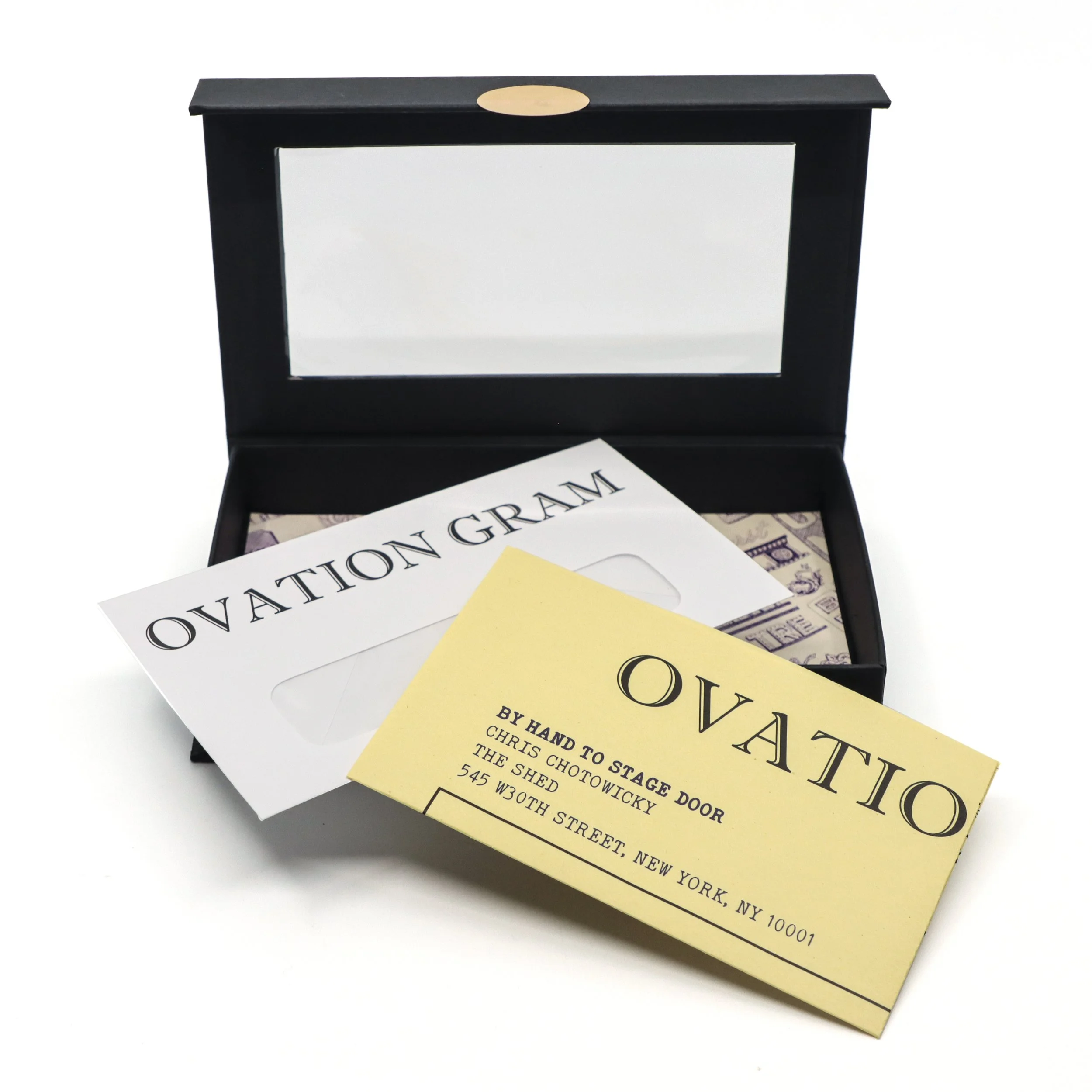 OVATION GRAMS arrive in a custom, keepsake box sealed with our tamper evident gold sticker nested in a magnetically-closed box. They’ll keep this box for years. It announces your kindness and stays on as a forever reminder.